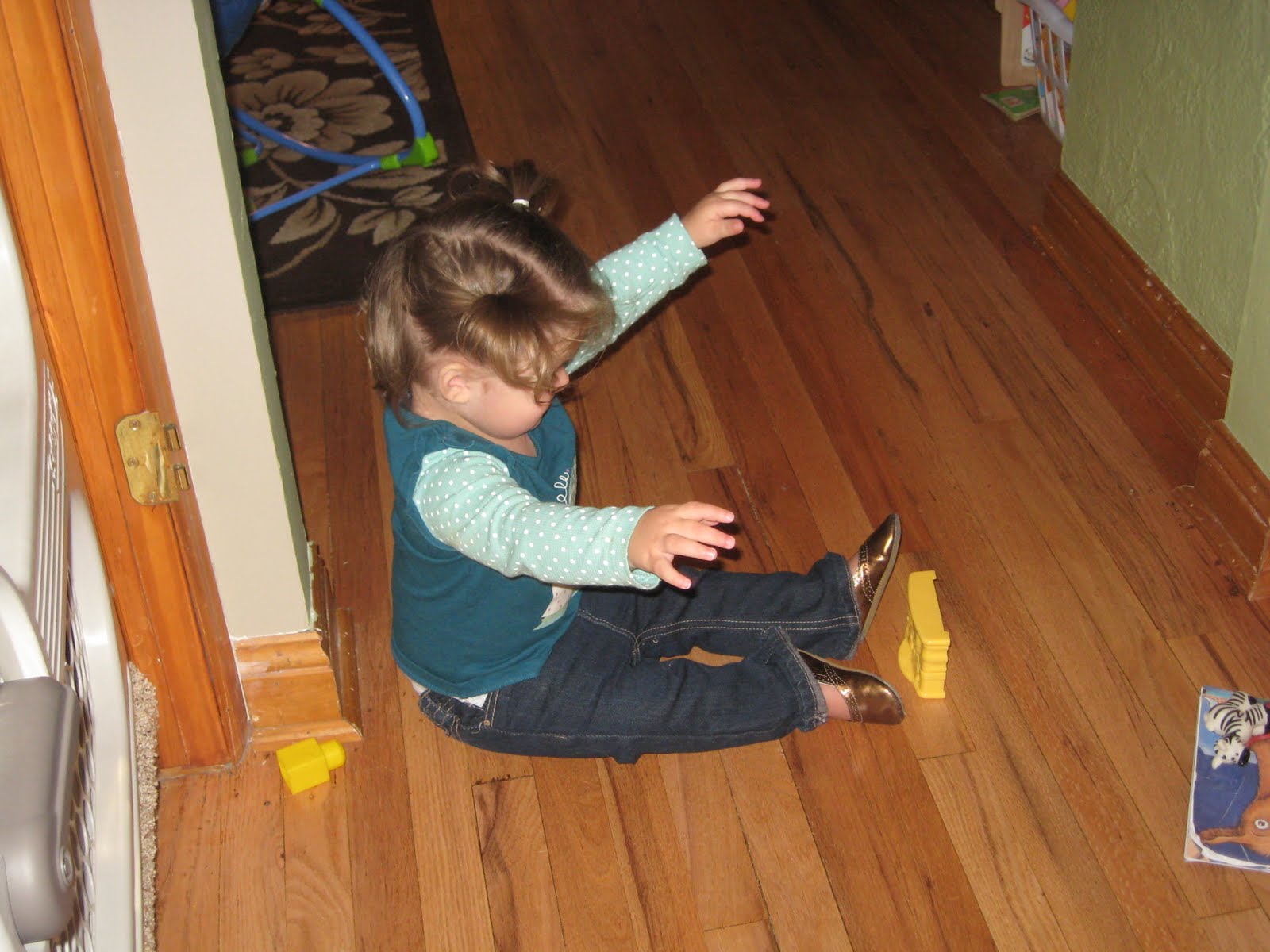She got caught going through her mother's bag. She was smiling really cute, but I just didn't snap the picture fast enough. Cute, no matter what!